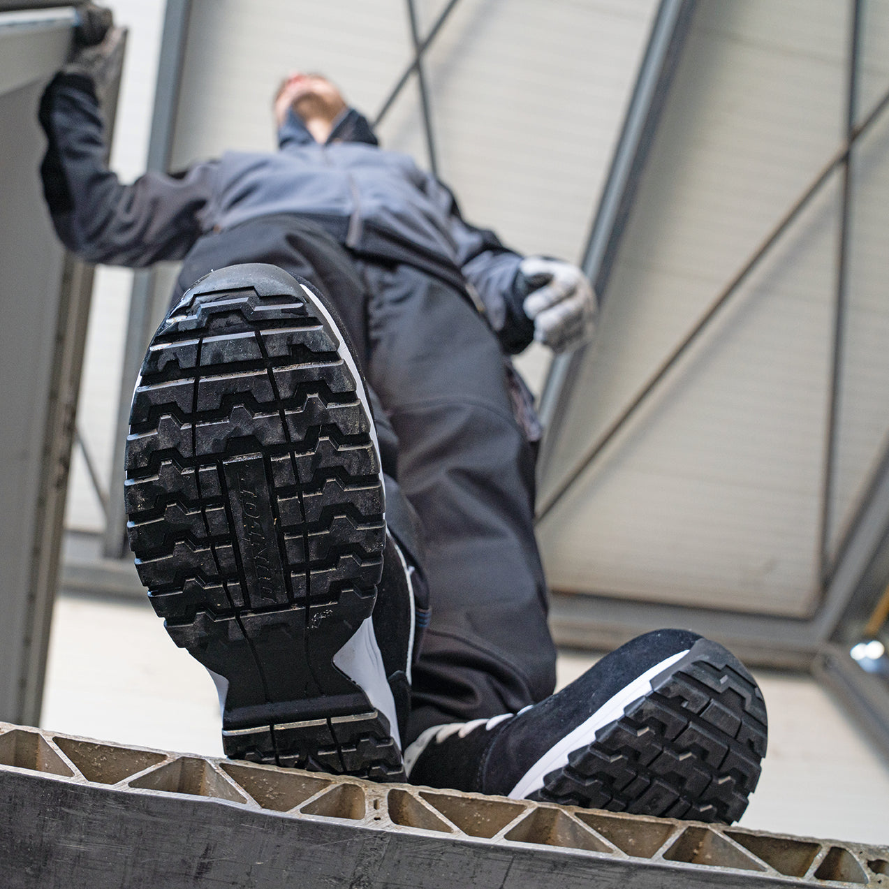 Dank wasserabweisendem Wildleder und robusten Microfaser-Einsätzen hält der Schuh auch in anspruchsvollen Arbeitsbereichen stand – von Werkstatt über Lager bis Montage.